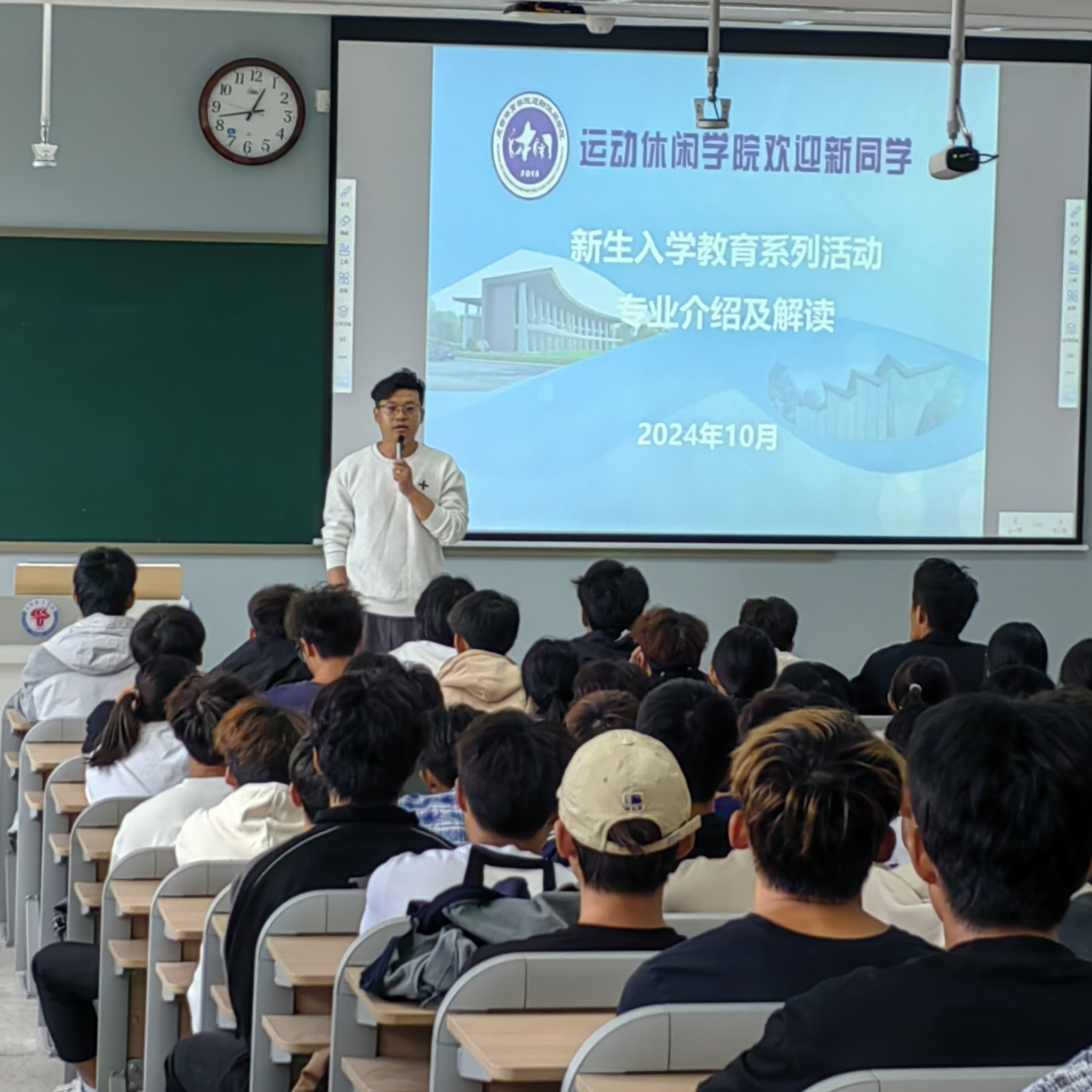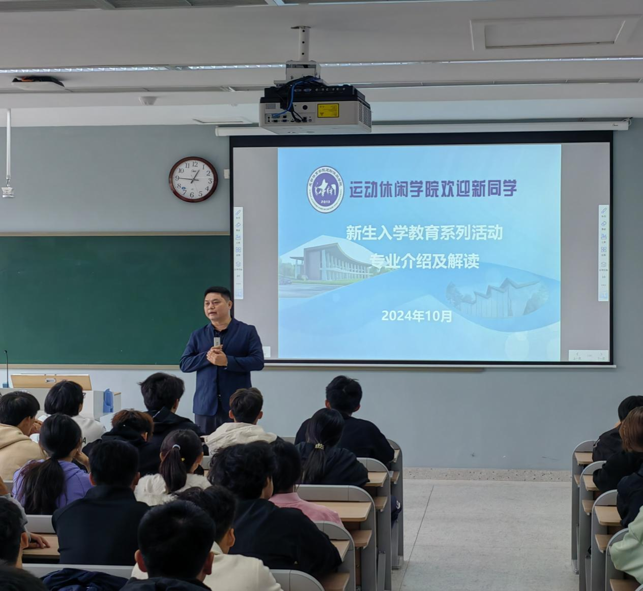 10月10日,beat365官方网站举行了2024级休闲体育专业和社会体育管理与指导专业,入学教育系列讲座之专业介绍及解读,beat365官方网站副院长蒋书君担任主讲人,学生管理办公室主任耿松主持会议。