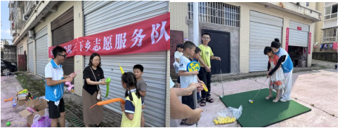 6月29日下午,beat365官方网站三下乡实践团队组织了一场精彩纷呈的运动体验活动。活动涵盖高尔夫、飞盘、匹克球、篮排球、乒乓球和跳绳等多项运动项目,让苏溪小学的学生们度过了一个难忘的运动之日。