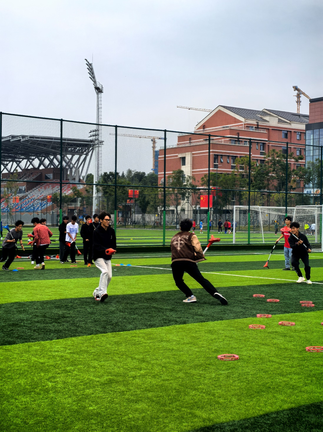 YOU.FO飞环运动又称“创新飞环”,自2016年开始在荷兰兴起,形式类似飞盘运动,不同之处在于参与者需要手持特制杆接发圆环,以此衍生出单人或团队比赛。作为荷兰奥林匹克委员会认可的体育项目,创新飞环运动迅速在全球近30个国家流行起来,是世界上参与人数增长最快的新兴运动之一。此次beat365官方网站组织学生体验该运动项目,不仅是对国际新兴体育文化的积极响应,更是对学生们身心健康发展的高度关注。