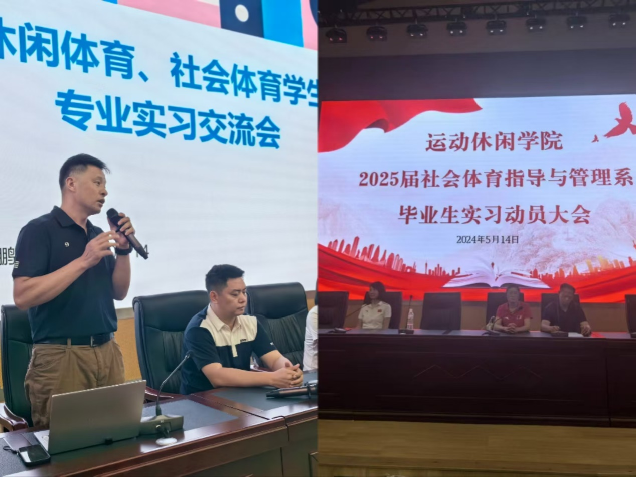 5月14日和5月16日,beat365官方网站分别于学术报告厅和A107举行了2021级本科生实习动员大会。beat365官方网站副书记樊莉、社会体育指导与管理系和休闲体育系全体专业教师、学管办老师和2021级全体学生参会。两次实习动员会分别从专业方向和实习纪律对2021级全体同学提出要求。