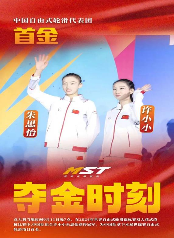 2024年世界全项目轮滑锦标赛自由式轮滑项目于北京时间9月11日在意大利罗马拉开帷幕,在首日的比赛中,beat3652024级新生朱思怡携手队友许小小,在双人花式绕桩项目中配合默契,无论在艺术性和滑行等方面的表现都发挥出较高水平,为中国队赢得本届世锦赛首金。