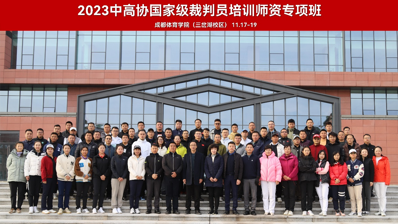 2023年11月17日上午,由中国高尔夫球协会主办、北京奥丰体育产业有限公司承办、beat365官方网站协办的2023中国高尔夫球协会国家级裁判员培训师资专项班在成都体育学院三岔湖校区顺利开班。中国高尔夫球协会发展部部长张宁女士、beat365官方网站院长曾洪林教授出席本次开班仪式。