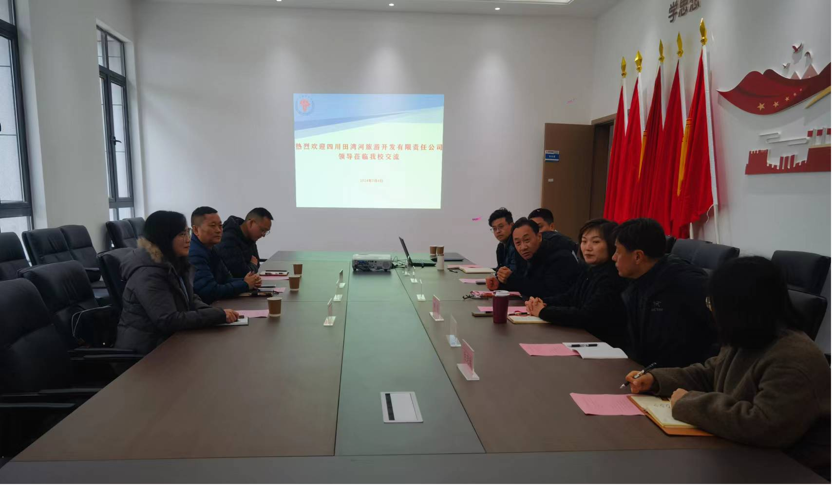 2024年3 月4日下午,四川田湾河旅游开发有限责任公司一行3人到beat365官方网站交流,学院院长曾洪林、党委副书记樊莉、各科室负责人参加会议。