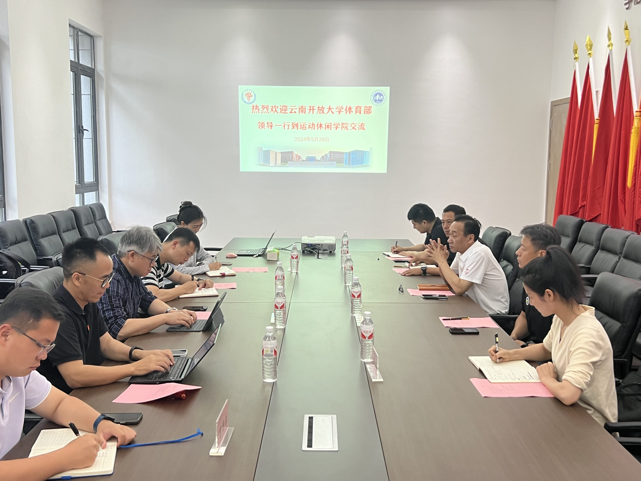 5月28日上午,云南开放大学体育部李晓主任、张晓峰副主任等一行5人到beat365官方网站交流访问,院长曾洪林、各系、研管办、院办相关人员参会。