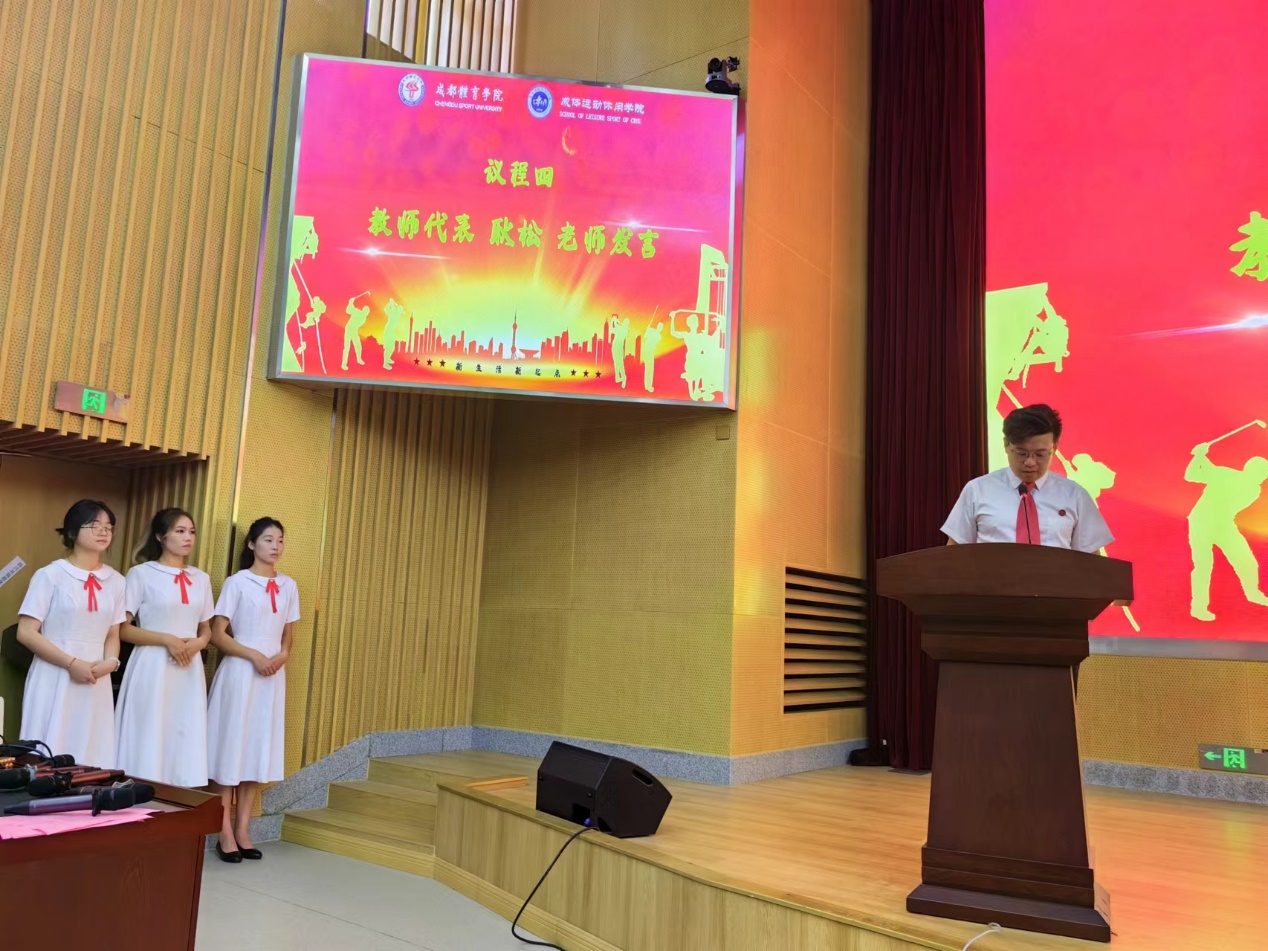 毕业典礼在22级休体班带来的开场表演后拉开帷幕,beat365官方网站党委书记李天林致辞,代表学院对全体毕业生表示祝贺并送去最真挚的祝福。教师代表耿松回顾同学们4年的成长历程,对他们取得的成绩给予了高度肯定,同时也对他们未来的人生道路寄予了殷切的希望和祝福。