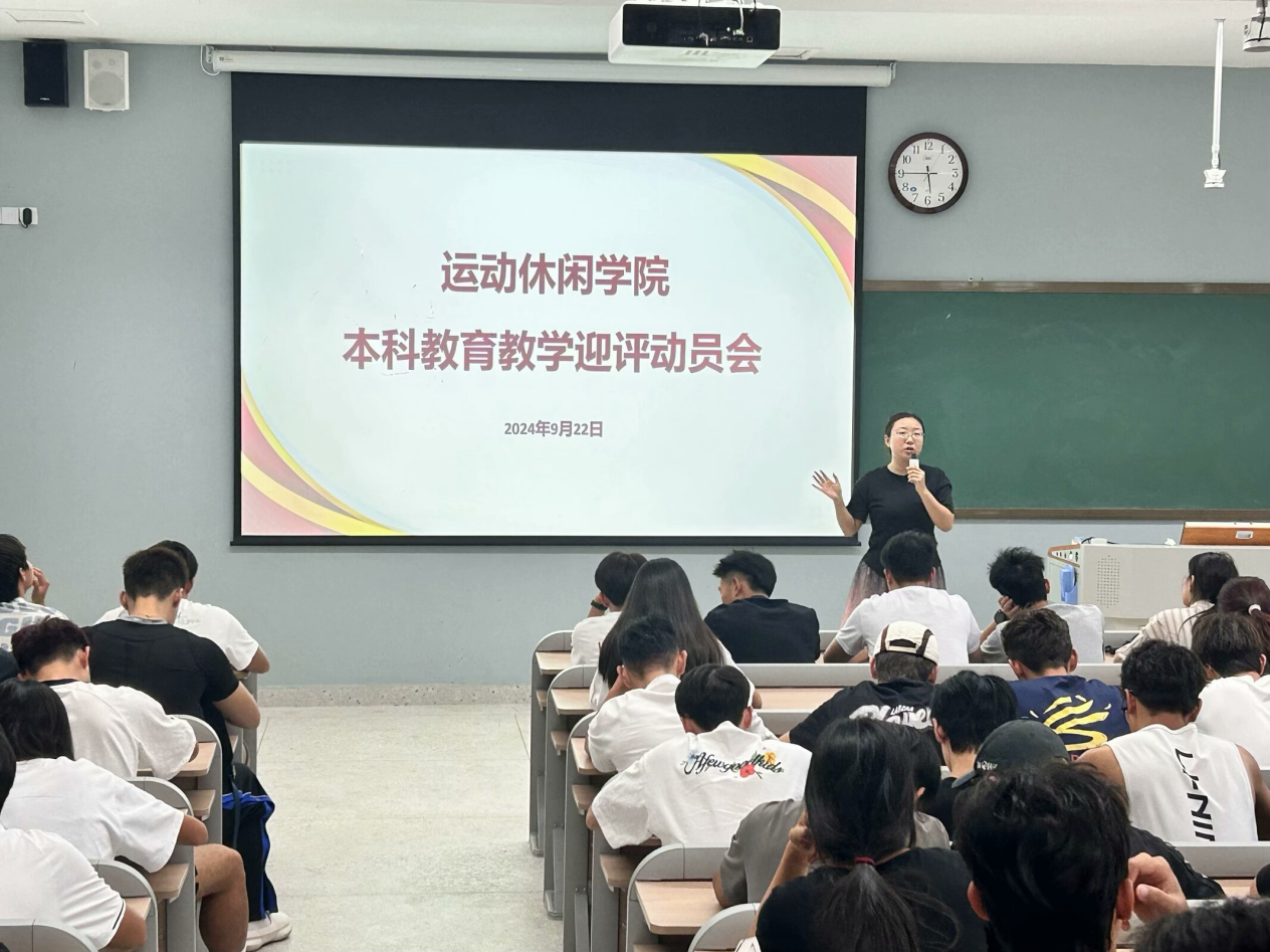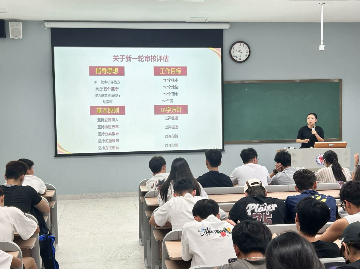在本科教育教学迎评动员会上,向同学们介绍了什么是本科教育教学评估以及关于本次评估同学们该怎么做。本科教育教学评估方案把“五个坚持”作为基本遵循和行动指南,坚持五项基本原则和16字方针,明确“1”个根本,“2”个地位,“3”个理念,“5”个度的工作目标。会议强调,本科教育教学评估与每位学生、每位老师都息息相关,同学们要深刻认识本科审核评估对学院、学校建设与发展的重要意义,以良好的精神面貌迎接评估工作。
