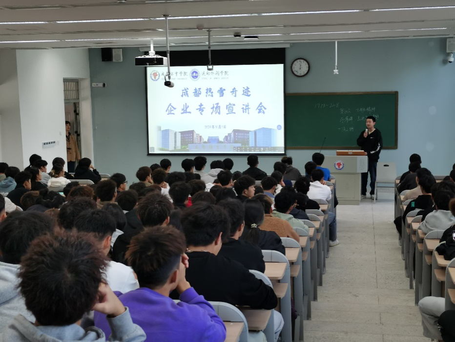 为进一步加深校企合作,搭建学生能力培养、实习就业平台,11月1日,beat365官方网站举行了成都热雪奇迹(融创雪世界)专场宣讲会,beat365官方网站各年级部分学生,学院副书记樊莉以及年级办公室老师参加。