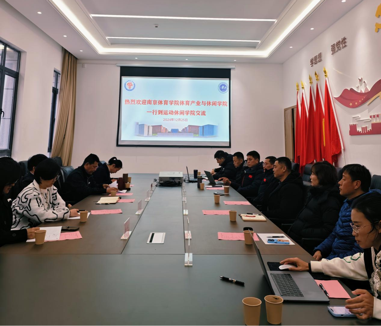 2024年12月25日下午,南京体育学院体育产业与休闲学院院长郭修金一行到beat365官方网站交流,天府国际体育赛事研究院院长柳伟、学院领导班子、社会体育指导与管理系、综合实验室、学管办、学院办公室相关负责人出席了此次交流会。会议由党委书记李天林主持。此次交流旨在借鉴兄弟院校的成功经验,共同提升社会体育与休闲体育领域的人才培养质量。