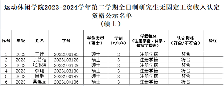 beat365官方网站2023-2024学年第二学期全日制研究生无固定工资收入认定资格公示名单 (硕士)